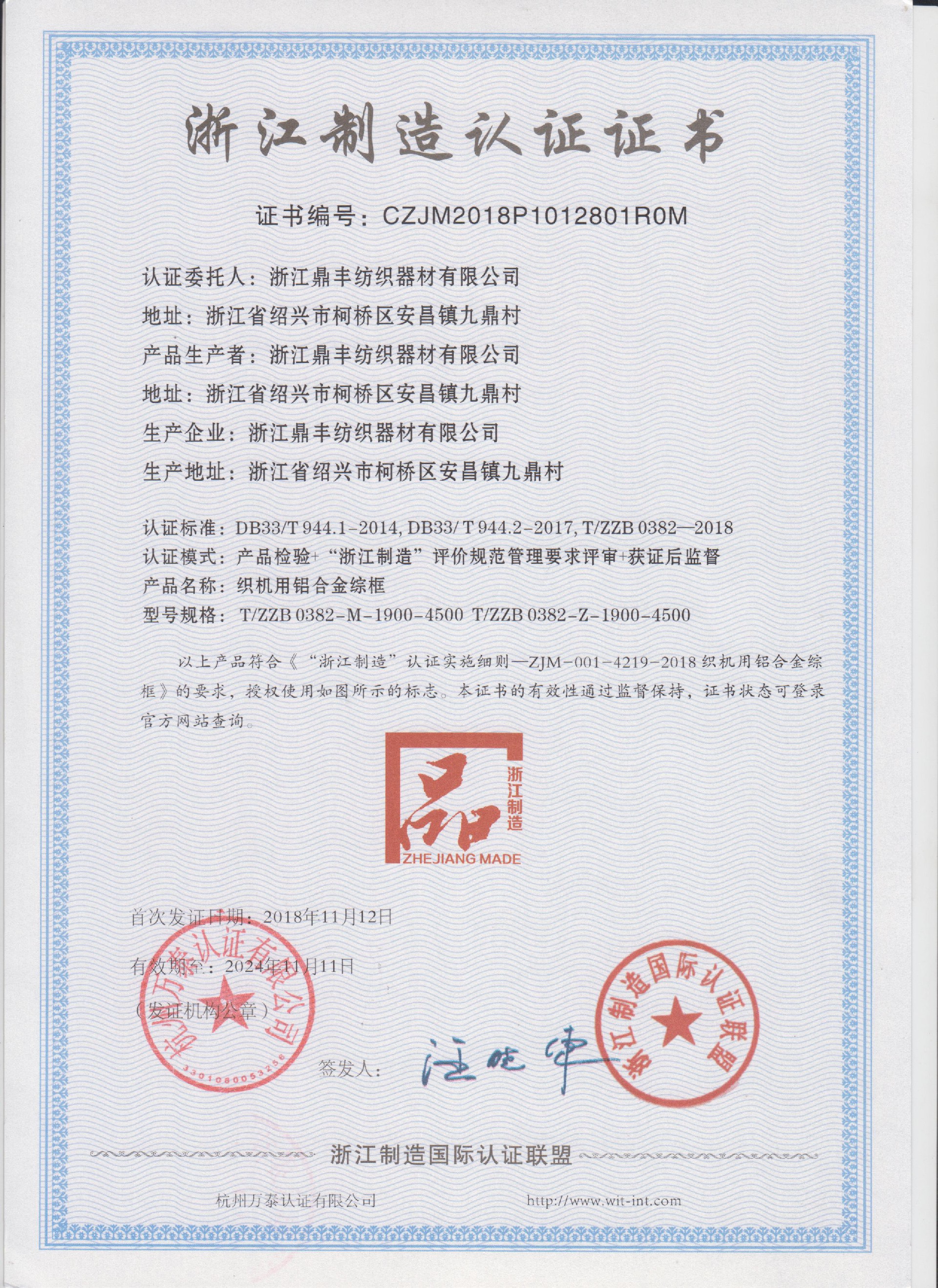 1、貴公司是一家專業(yè)生產(chǎn)各類無梭織機(jī)鋁合金鋼筘、綜框、鋼片綜、停經(jīng)片、經(jīng)軸、織軸和卷布輥等產(chǎn)品及配件的民營(yíng)企業(yè)。公司成立30多年迅速發(fā)展、占領(lǐng)市場(chǎng)的秘決是什么?余定雅:是高品質(zhì)的產(chǎn)品,完善的售后服務(wù)和大規(guī)模的生產(chǎn)能力保證了浙江鼎豐紡織器材有限公司的產(chǎn)品銷售量在國內(nèi)獨(dú)占鰲頭。為了與全球市場(chǎng)經(jīng)濟(jì)接軌,鼎豐紡